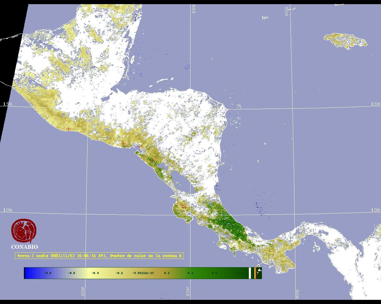 Se considera como punto de calor al elemento espacial mínimo de la imagen (pixel) que reporta una temperatura elevada. Para las imágenes diurnas la temperatura mínima considera es de 42C y para las imágenes nocturnas es de 25C. |