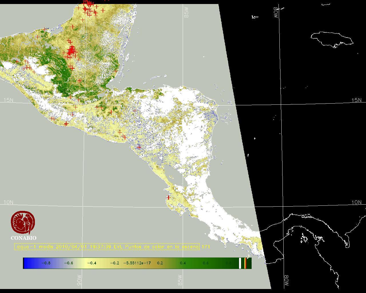 Se considera como punto de calor al elemento espacial mínimo de la imagen (pixel) que reporta una temperatura elevada. Para las imágenes diurnas la temperatura mínima considera es de 42C y para las imágenes nocturnas es de 25C. |