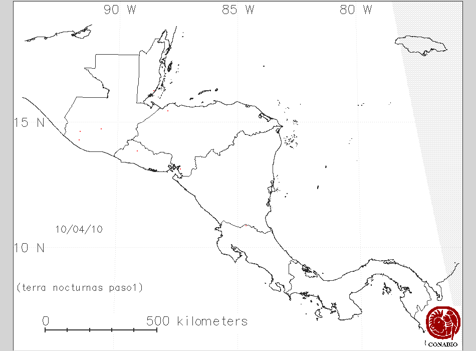 Se considera como punto de calor al elemento espacial mínimo de la imagen (pixel) que reporta una temperatura elevada. Para las imágenes diurnas la temperatura mínima considera es de 42C y para las imágenes nocturnas es de 25C. |