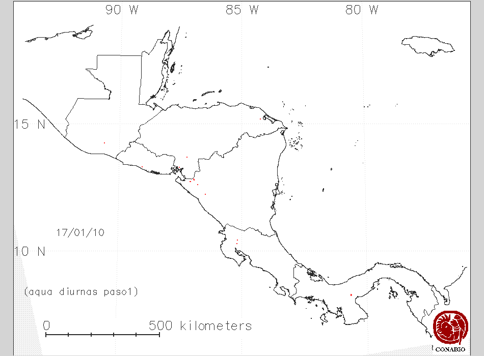 Se considera como punto de calor al elemento espacial mínimo de la imagen (pixel) que reporta una temperatura elevada. Para las imágenes diurnas la temperatura mínima considera es de 42C y para las imágenes nocturnas es de 25C. |