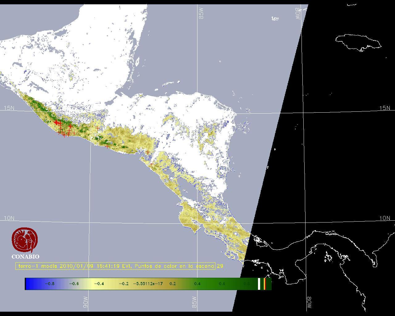 Se considera como punto de calor al elemento espacial mínimo de la imagen (pixel) que reporta una temperatura elevada. Para las imágenes diurnas la temperatura mínima considera es de 42C y para las imágenes nocturnas es de 25C. |