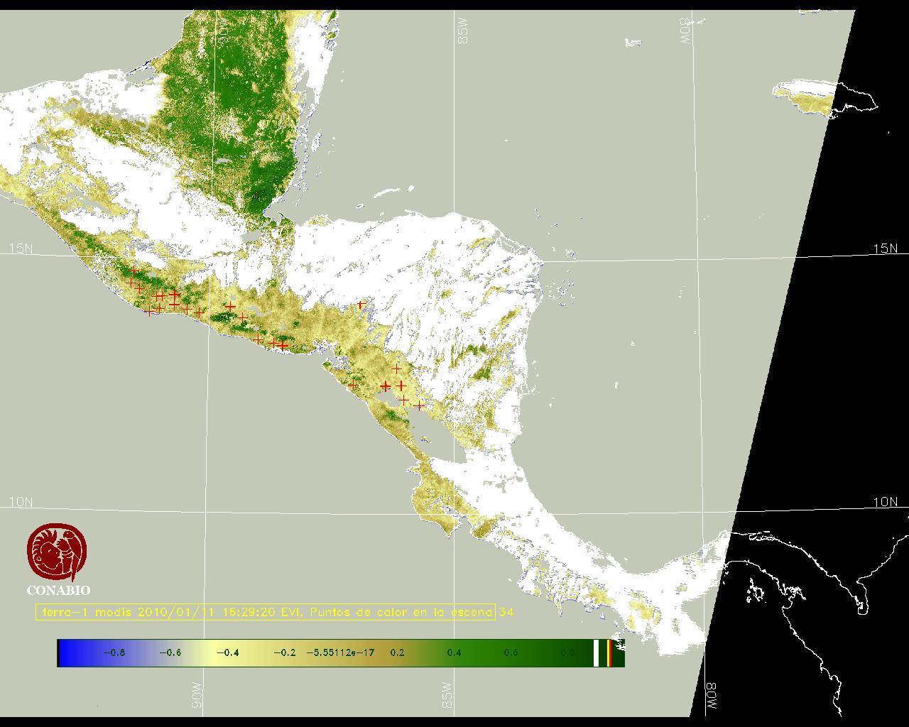 Se considera como punto de calor al elemento espacial mínimo de la imagen (pixel) que reporta una temperatura elevada. Para las imágenes diurnas la temperatura mínima considera es de 42C y para las imágenes nocturnas es de 25C. |