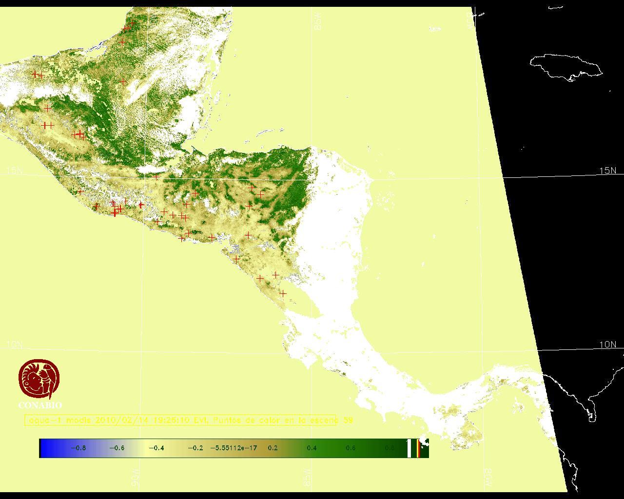 Se considera como punto de calor al elemento espacial mínimo de la imagen (pixel) que reporta una temperatura elevada. Para las imágenes diurnas la temperatura mínima considera es de 42C y para las imágenes nocturnas es de 25C. |