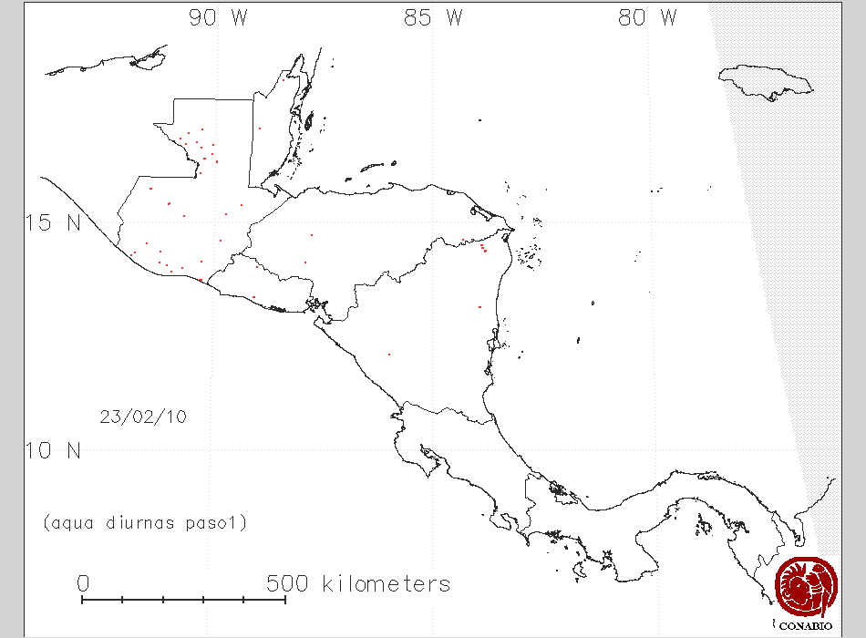Se considera como punto de calor al elemento espacial mínimo de la imagen (pixel) que reporta una temperatura elevada. Para las imágenes diurnas la temperatura mínima considera es de 42C y para las imágenes nocturnas es de 25C. |