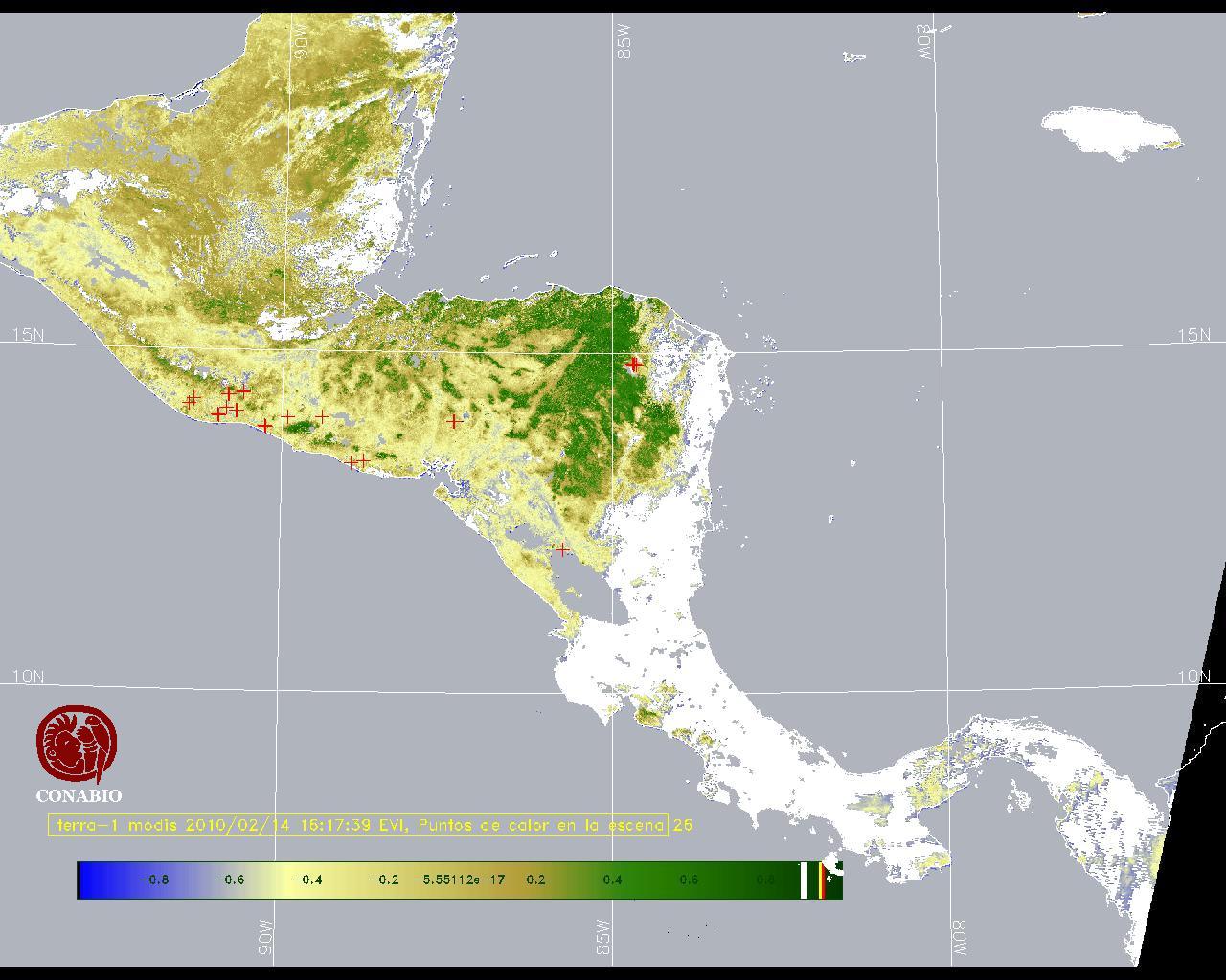 Se considera como punto de calor al elemento espacial mínimo de la imagen (pixel) que reporta una temperatura elevada. Para las imágenes diurnas la temperatura mínima considera es de 42C y para las imágenes nocturnas es de 25C. |