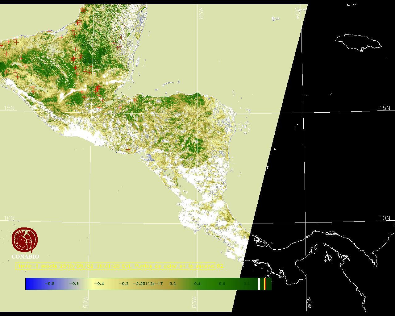 Los valores del índice van de -1 a 1, entre más cercano al valor 1 la vegetación presenta mayor vigor. Los índices de vegetación son utilizados para conocer el comportamiento de la vegetación tanto espacial como temporal. |