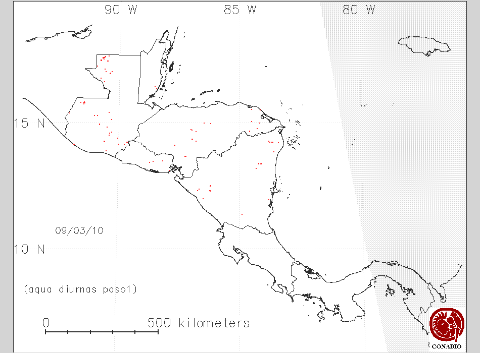 Se considera como punto de calor al elemento espacial mínimo de la imagen (pixel) que reporta una temperatura elevada. Para las imágenes diurnas la temperatura mínima considera es de 42C y para las imágenes nocturnas es de 25C. |