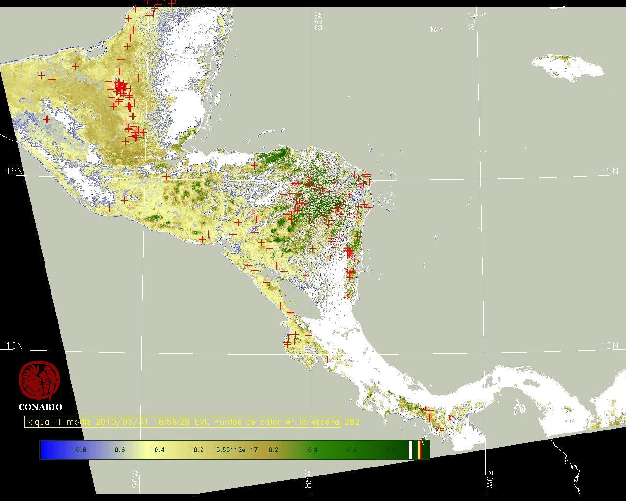 Se considera como punto de calor al elemento espacial mínimo de la imagen (pixel) que reporta una temperatura elevada. Para las imágenes diurnas la temperatura mínima considera es de 42C y para las imágenes nocturnas es de 25C. |