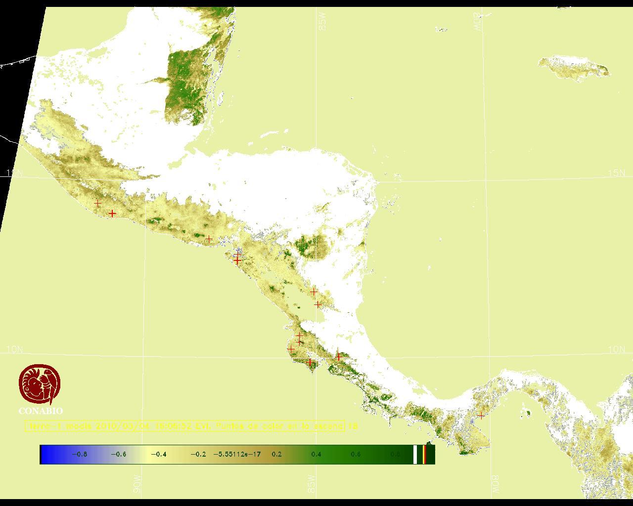 Los valores del índice van de -1 a 1, entre más cercano al valor 1 la vegetación presenta mayor vigor. Los índices de vegetación son utilizados para conocer el comportamiento de la vegetación tanto espacial como temporal. |
