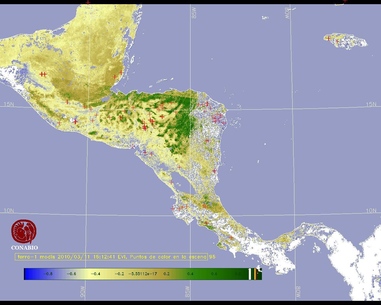 Se considera como punto de calor al elemento espacial mínimo de la imagen (pixel) que reporta una temperatura elevada. Para las imágenes diurnas la temperatura mínima considera es de 42C y para las imágenes nocturnas es de 25C. |