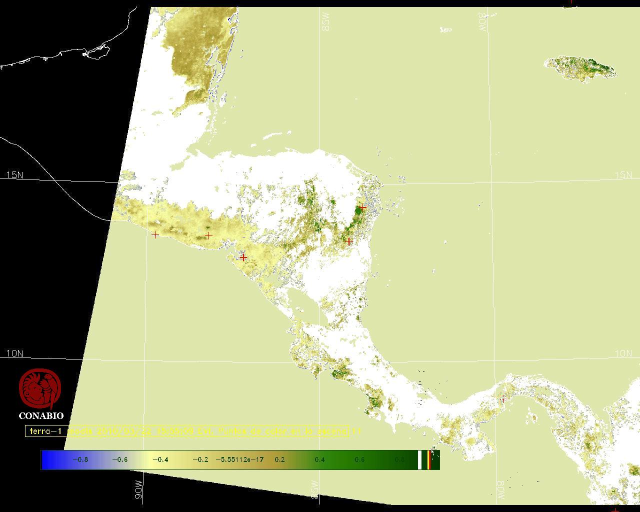 Los valores del índice van de -1 a 1, entre más cercano al valor 1 la vegetación presenta mayor vigor. Los índices de vegetación son utilizados para conocer el comportamiento de la vegetación tanto espacial como temporal. |
