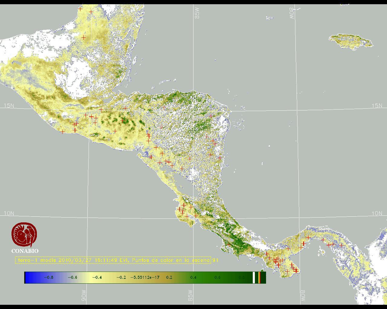 Se considera como punto de calor al elemento espacial mínimo de la imagen (pixel) que reporta una temperatura elevada. Para las imágenes diurnas la temperatura mínima considera es de 42C y para las imágenes nocturnas es de 25C. |