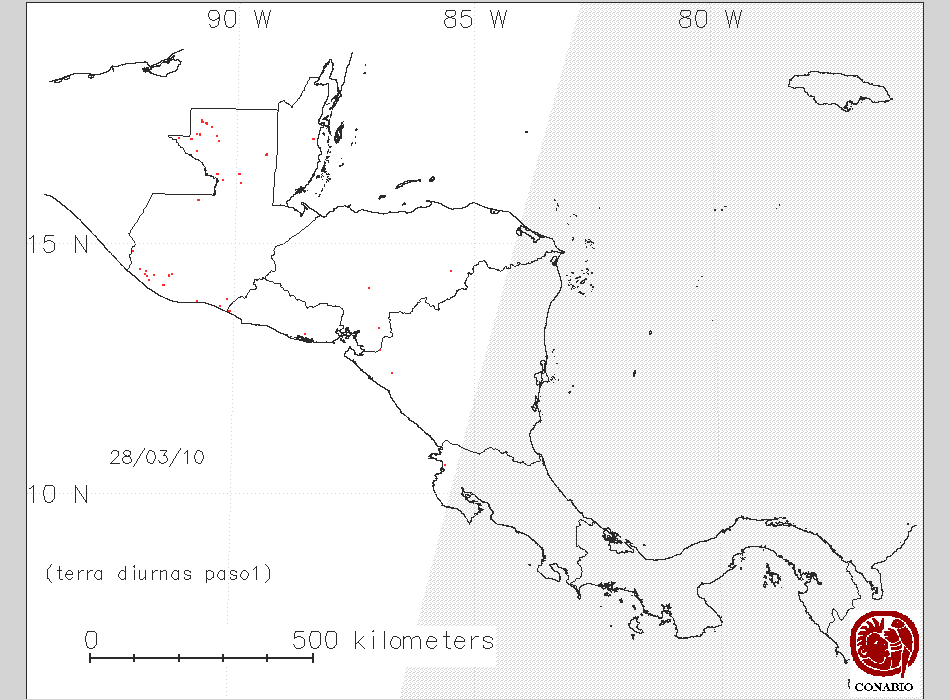 Se considera como punto de calor al elemento espacial mínimo de la imagen (pixel) que reporta una temperatura elevada. Para las imágenes diurnas la temperatura mínima considera es de 42C y para las imágenes nocturnas es de 25C. |