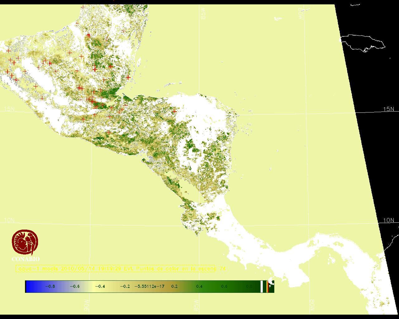 Se considera como punto de calor al elemento espacial mínimo de la imagen (pixel) que reporta una temperatura elevada. Para las imágenes diurnas la temperatura mínima considera es de 42C y para las imágenes nocturnas es de 25C. |