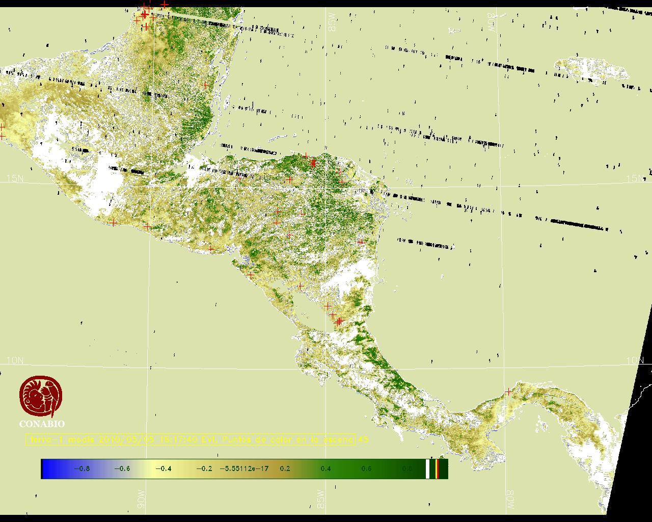 Los valores del índice van de -1 a 1, entre más cercano al valor 1 la vegetación presenta mayor vigor. Los índices de vegetación son utilizados para conocer el comportamiento de la vegetación tanto espacial como temporal. |