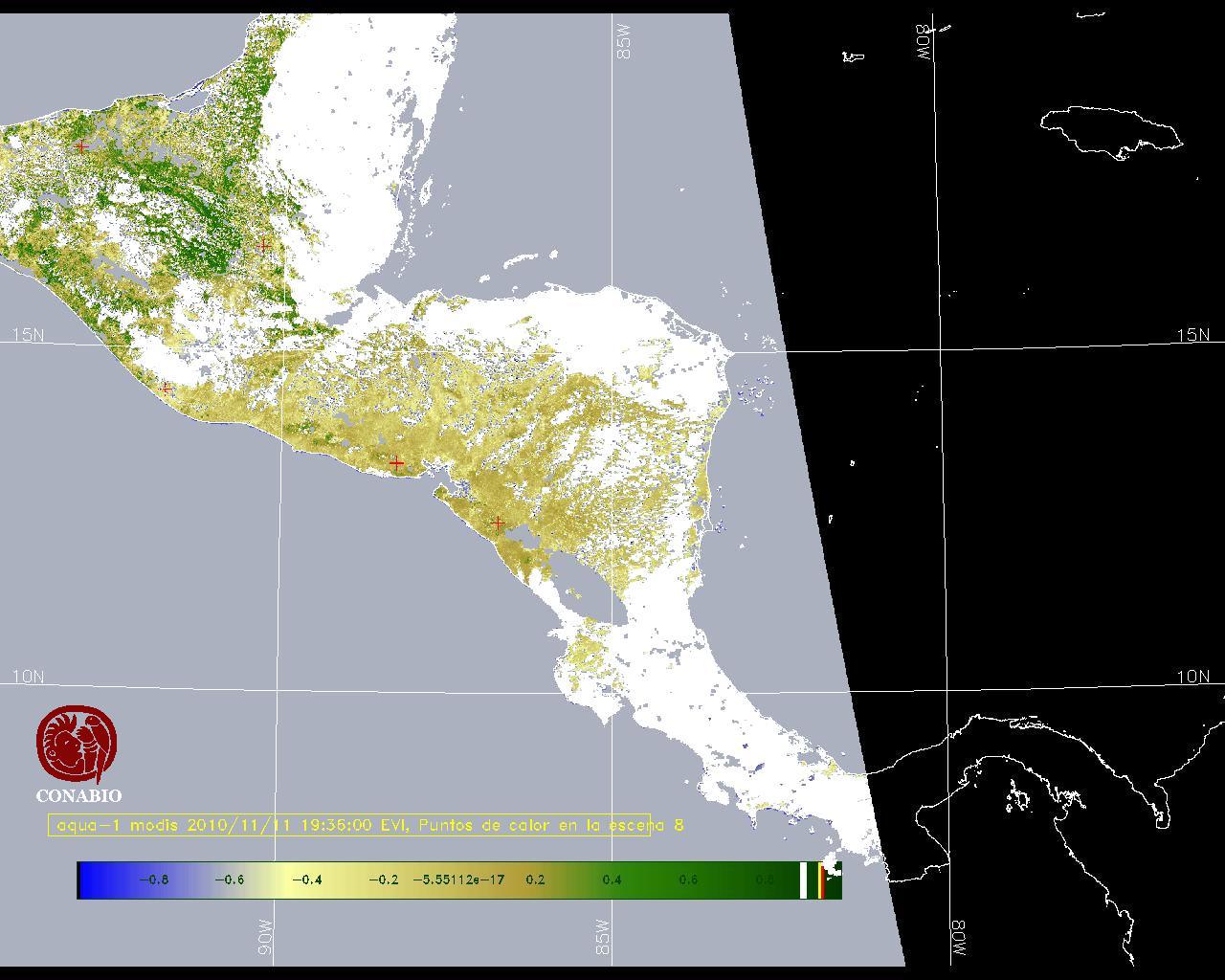 Se considera como punto de calor al elemento espacial mínimo de la imagen (pixel) que reporta una temperatura elevada. Para las imágenes diurnas la temperatura mínima considera es de 42C y para las imágenes nocturnas es de 25C. |
