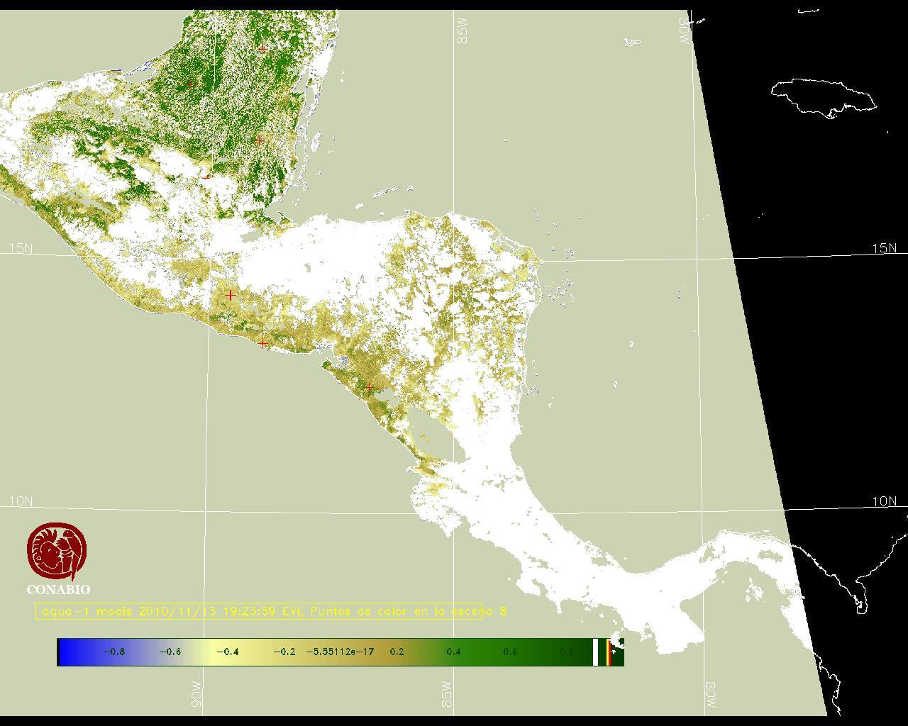 Se considera como punto de calor al elemento espacial mínimo de la imagen (pixel) que reporta una temperatura elevada. Para las imágenes diurnas la temperatura mínima considera es de 42C y para las imágenes nocturnas es de 25C. |