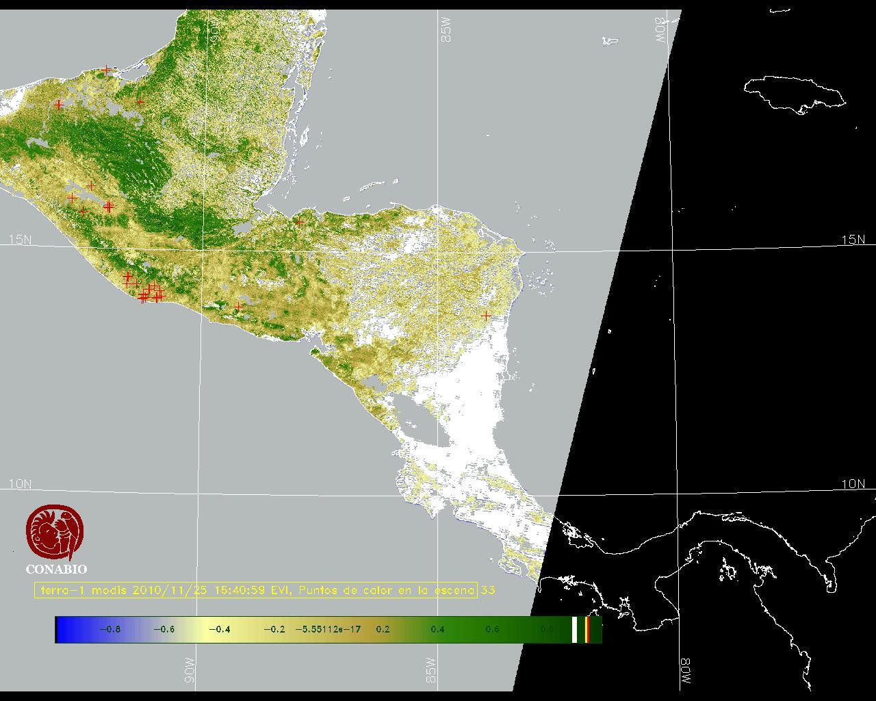 Se considera como punto de calor al elemento espacial mínimo de la imagen (pixel) que reporta una temperatura elevada. Para las imágenes diurnas la temperatura mínima considera es de 42C y para las imágenes nocturnas es de 25C. |