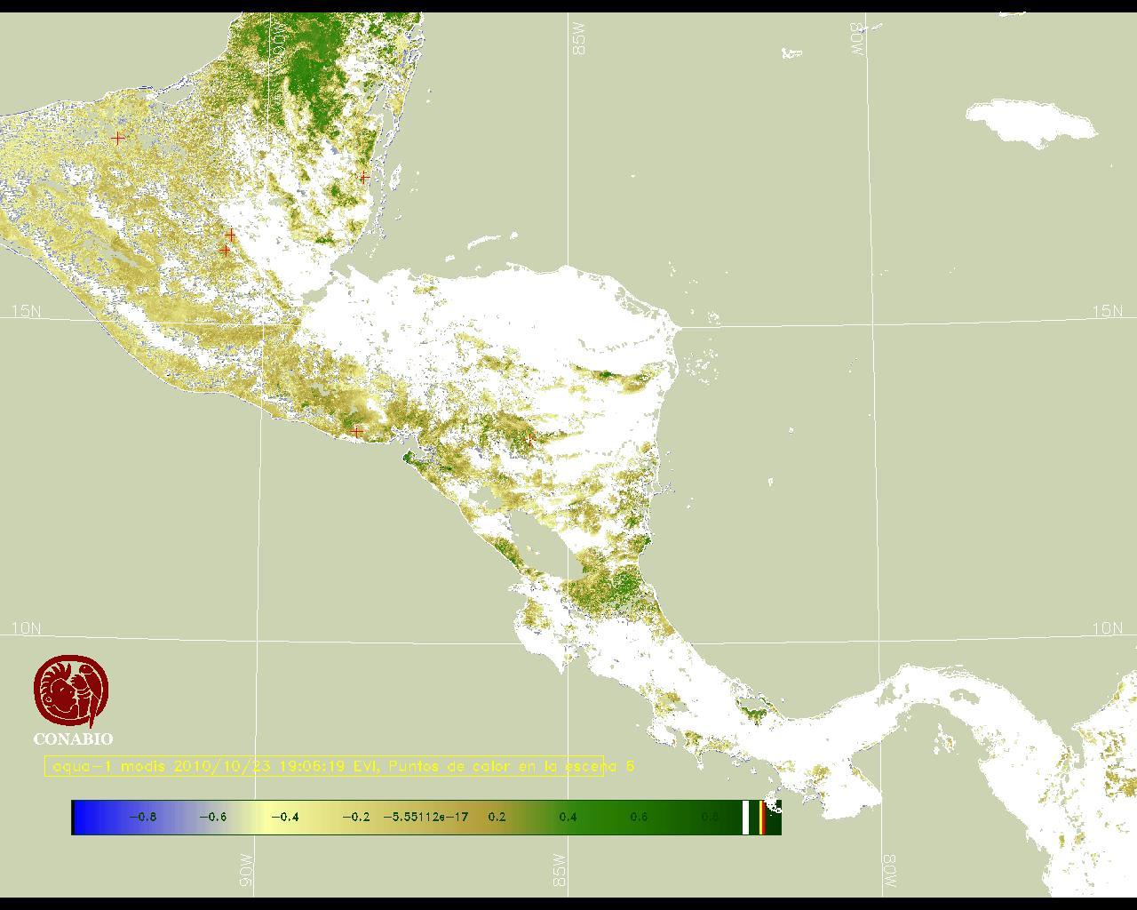 Se considera como punto de calor al elemento espacial mínimo de la imagen (pixel) que reporta una temperatura elevada. Para las imágenes diurnas la temperatura mínima considera es de 42C y para las imágenes nocturnas es de 25C. |