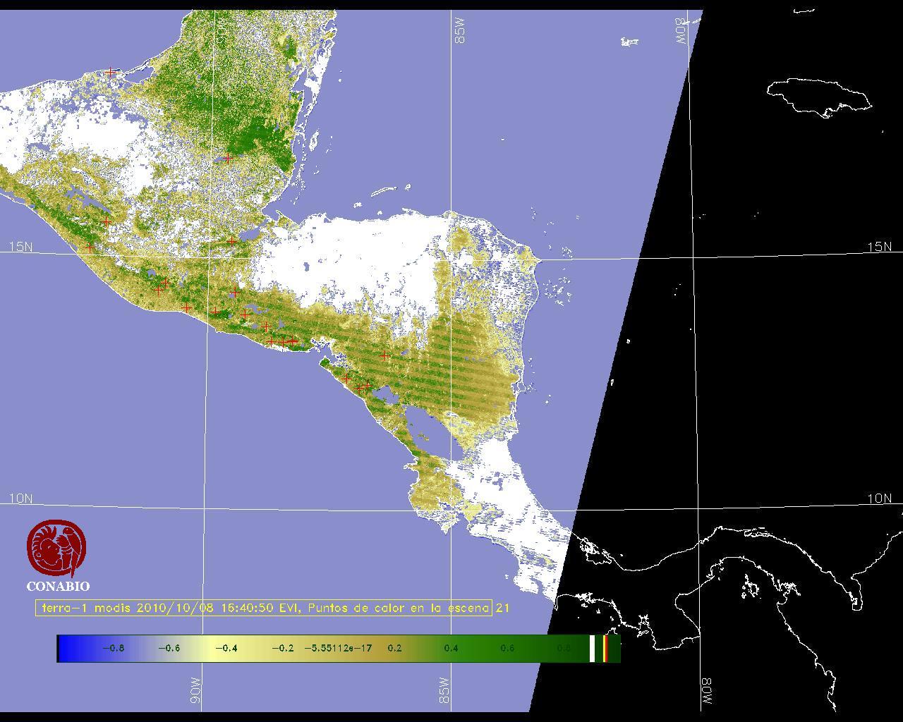 Se considera como punto de calor al elemento espacial mínimo de la imagen (pixel) que reporta una temperatura elevada. Para las imágenes diurnas la temperatura mínima considera es de 42C y para las imágenes nocturnas es de 25C. |