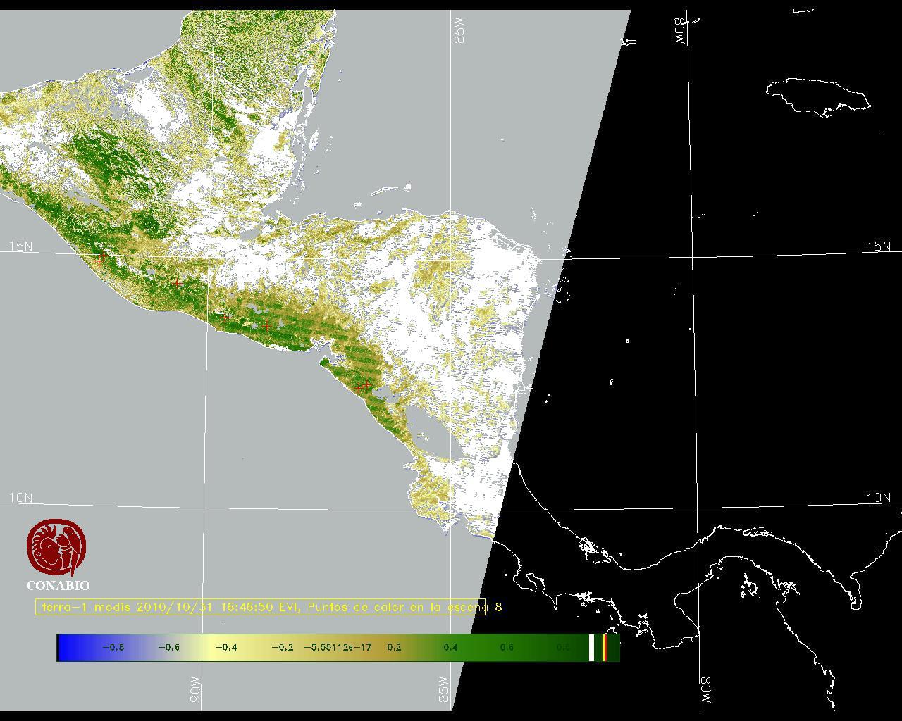 Se considera como punto de calor al elemento espacial mínimo de la imagen (pixel) que reporta una temperatura elevada. Para las imágenes diurnas la temperatura mínima considera es de 42C y para las imágenes nocturnas es de 25C. |