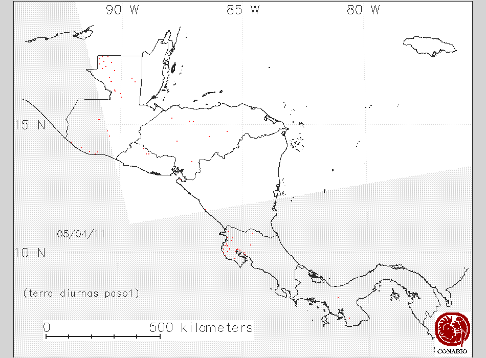 Se considera como punto de calor al elemento espacial mínimo de la imagen (pixel) que reporta una temperatura elevada. Para las imágenes diurnas la temperatura mínima considera es de 42C y para las imágenes nocturnas es de 25C. |
