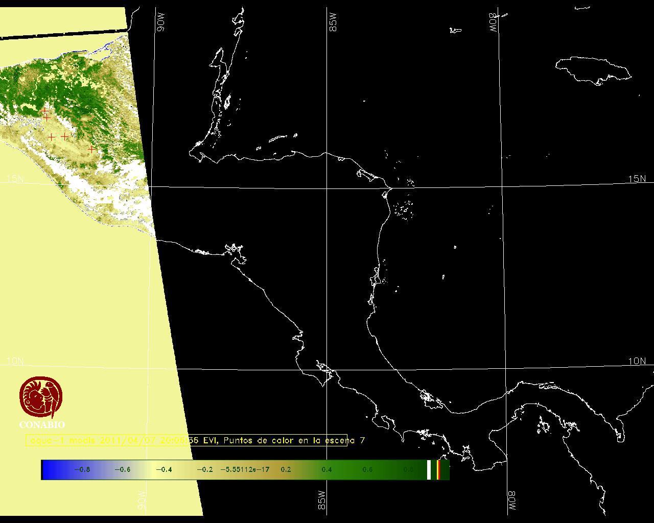 Se considera como punto de calor al elemento espacial mínimo de la imagen (pixel) que reporta una temperatura elevada. Para las imágenes diurnas la temperatura mínima considera es de 42C y para las imágenes nocturnas es de 25C. |