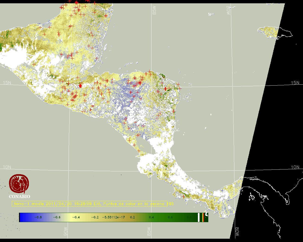 Se considera como punto de calor al elemento espacial mínimo de la imagen (pixel) que reporta una temperatura elevada. Para las imágenes diurnas la temperatura mínima considera es de 42C y para las imágenes nocturnas es de 25C. |