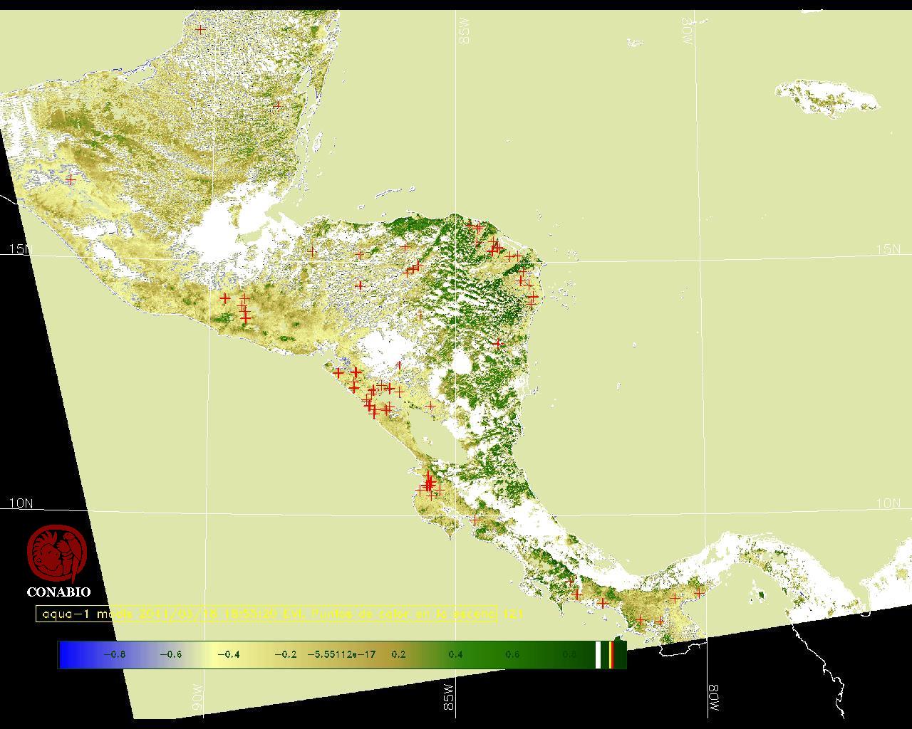 Se considera como punto de calor al elemento espacial mínimo de la imagen (pixel) que reporta una temperatura elevada. Para las imágenes diurnas la temperatura mínima considera es de 42C y para las imágenes nocturnas es de 25C. |