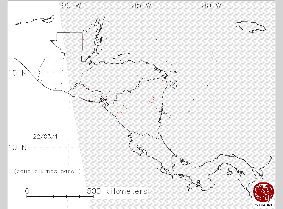 Se considera como punto de calor al elemento espacial mínimo de la imagen (pixel) que reporta una temperatura elevada. Para las imágenes diurnas la temperatura mínima considera es de 42C y para las imágenes nocturnas es de 25C. |