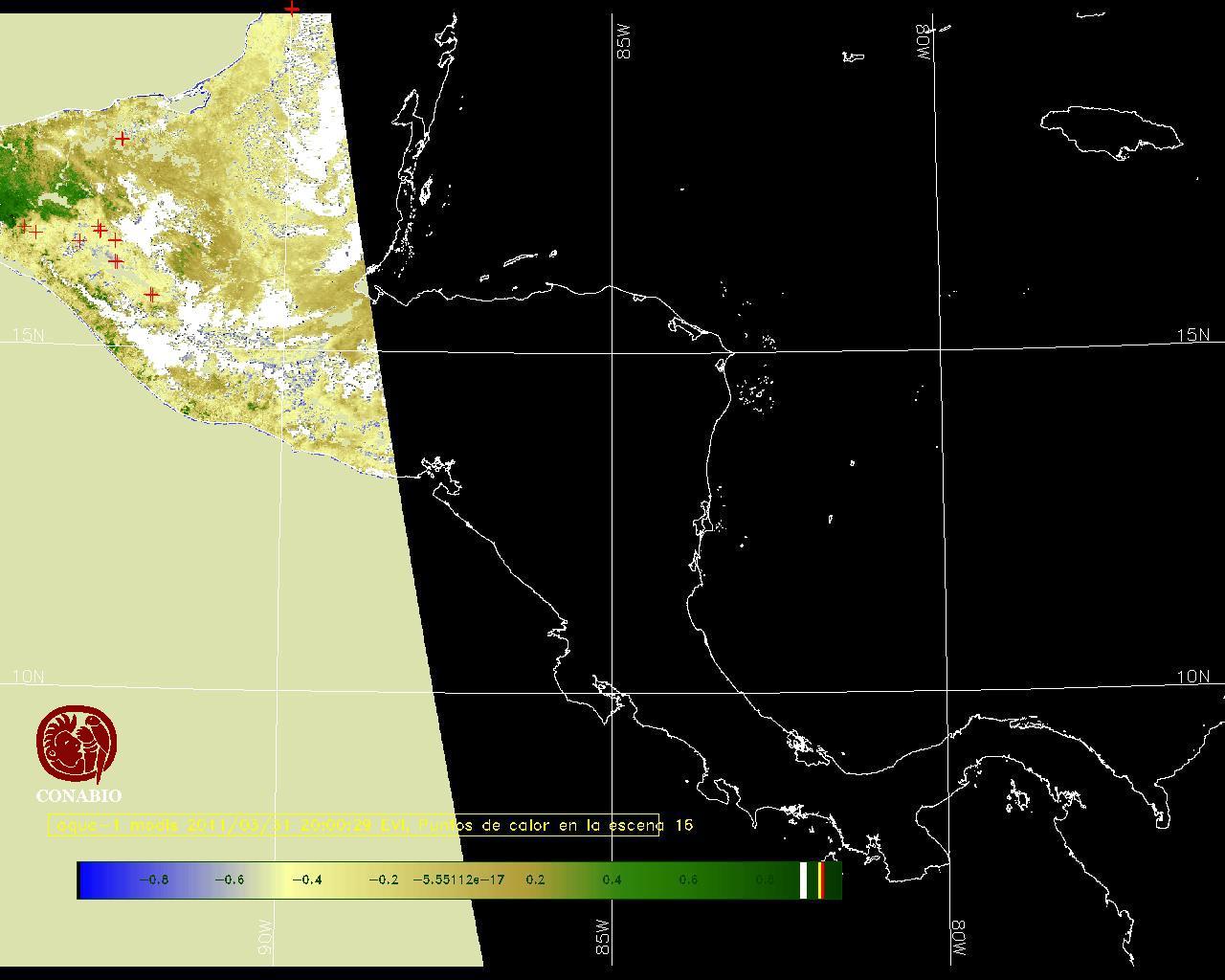 Se considera como punto de calor al elemento espacial mínimo de la imagen (pixel) que reporta una temperatura elevada. Para las imágenes diurnas la temperatura mínima considera es de 42C y para las imágenes nocturnas es de 25C. |