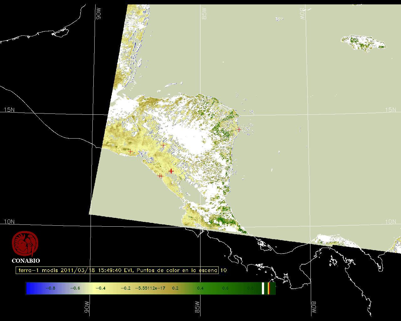 Se considera como punto de calor al elemento espacial mínimo de la imagen (pixel) que reporta una temperatura elevada. Para las imágenes diurnas la temperatura mínima considera es de 42C y para las imágenes nocturnas es de 25C. |