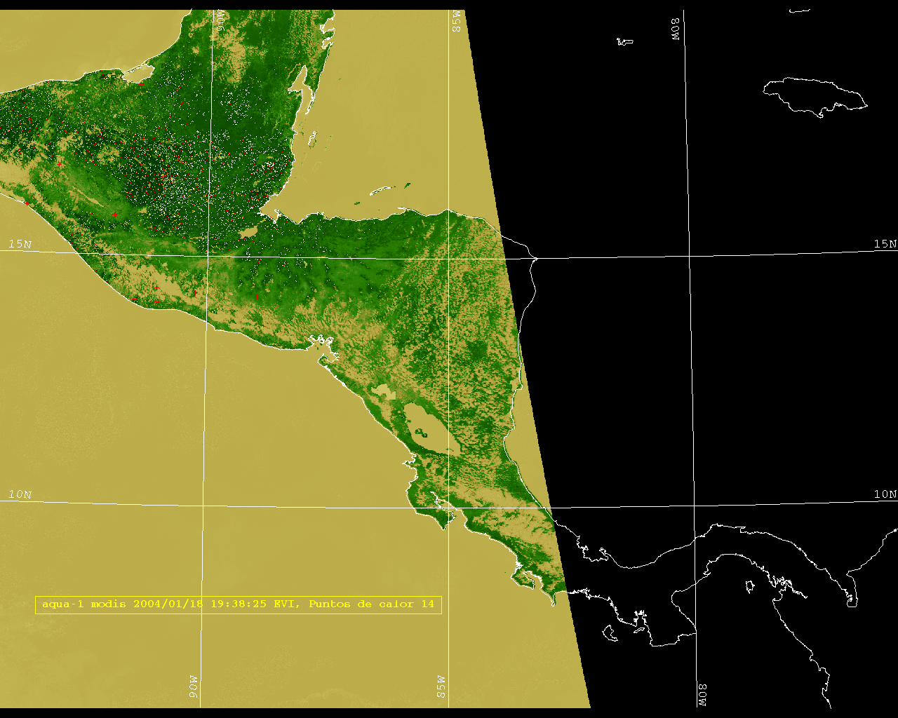Se considera como punto de calor al elemento espacial mínimo de la imagen (pixel) que reporta una temperatura elevada. Para las imágenes diurnas la temperatura mínima considera es de 42°C y para las imágenes nocturnas es de 25°C. |