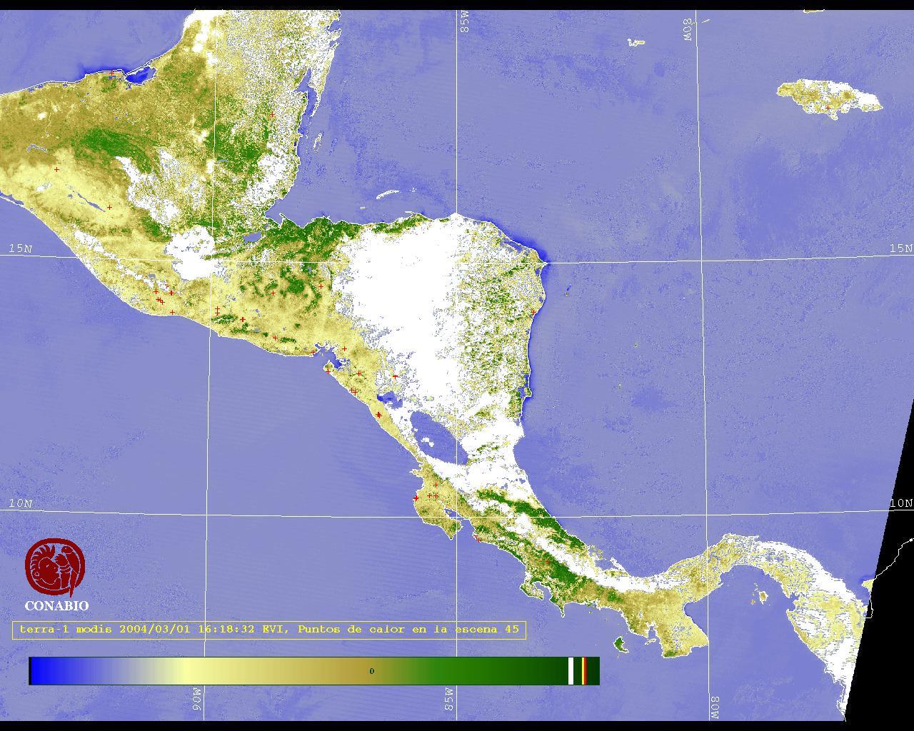 Se considera como punto de calor al elemento espacial mínimo de la imagen (pixel) que reporta una temperatura elevada. Para las imágenes diurnas la temperatura mínima considera es de 42°C y para las imágenes nocturnas es de 25°C. |