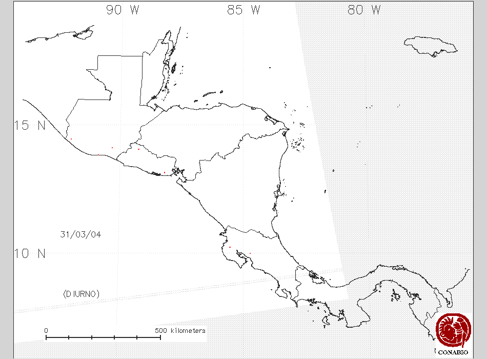 Se considera como punto de calor al elemento espacial mínimo de la imagen (pixel) que reporta una temperatura elevada. Para las imágenes diurnas la temperatura mínima considera es de 42°C y para las imágenes nocturnas es de 25°C. |