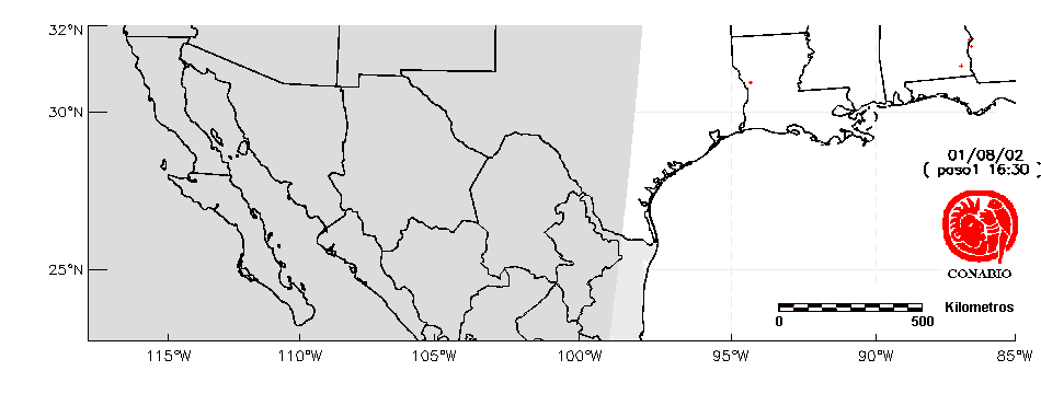 Se considera como punto de calor al elemento espacial mínimo de la imagen (pixel) que reporta una temperatura elevada. Para las imágenes diurnas la temperatura mínima considera es de 42°C y para las imágenes nocturnas es de 25°C. |