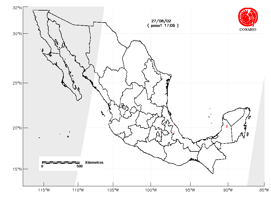 Se considera como punto de calor al elemento espacial mínimo de la imagen (pixel) que reporta una temperatura elevada. Para las imágenes diurnas la temperatura mínima considera es de 42°C y para las imágenes nocturnas es de 25°C. |