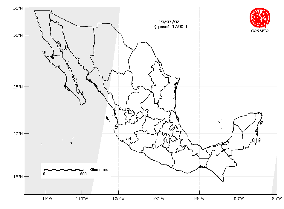 Se considera como punto de calor al elemento espacial mínimo de la imagen (pixel) que reporta una temperatura elevada. Para las imágenes diurnas la temperatura mínima considera es de 42°C y para las imágenes nocturnas es de 25°C. |