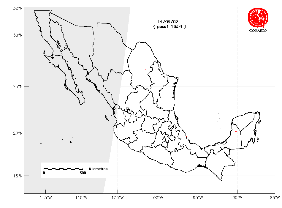 Se considera como punto de calor al elemento espacial mínimo de la imagen (pixel) que reporta una temperatura elevada. Para las imágenes diurnas la temperatura mínima considera es de 42°C y para las imágenes nocturnas es de 25°C. |