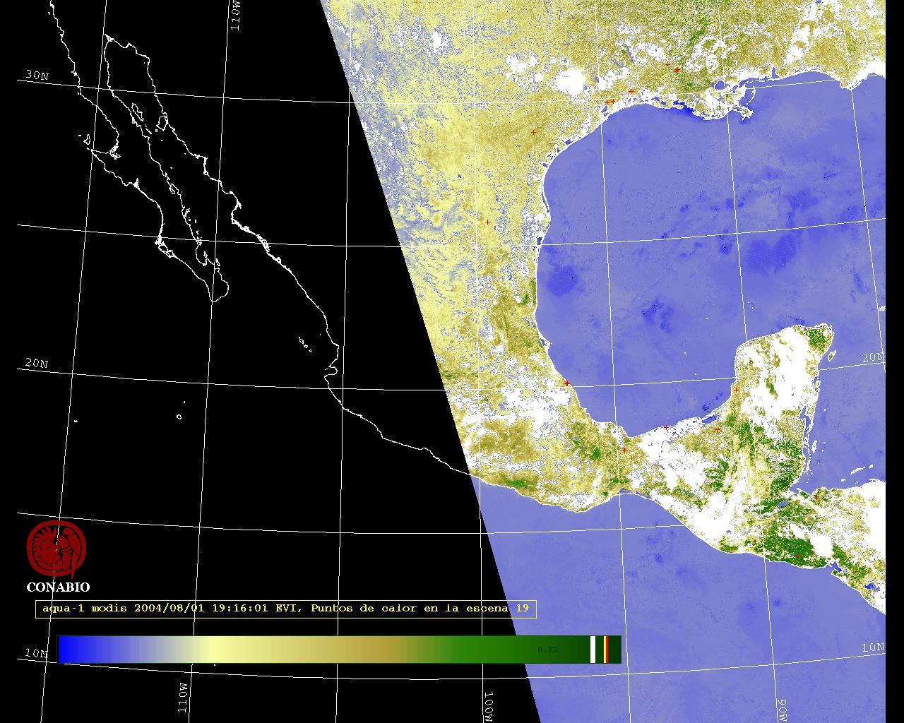 Se considera como punto de calor al elemento espacial mínimo de la imagen (pixel) que reporta una temperatura elevada. Para las imágenes diurnas la temperatura mínima considera es de 42 C y para las imágenes nocturnas es de 25 C. |