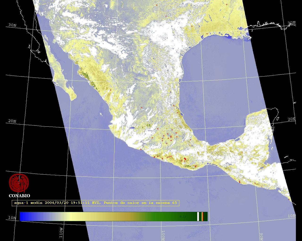 Se considera como punto de calor al elemento espacial mínimo de la imagen (pixel) que reporta una temperatura elevada. Para las imágenes diurnas la temperatura mínima considera es de 42 C y para las imágenes nocturnas es de 25 C. |