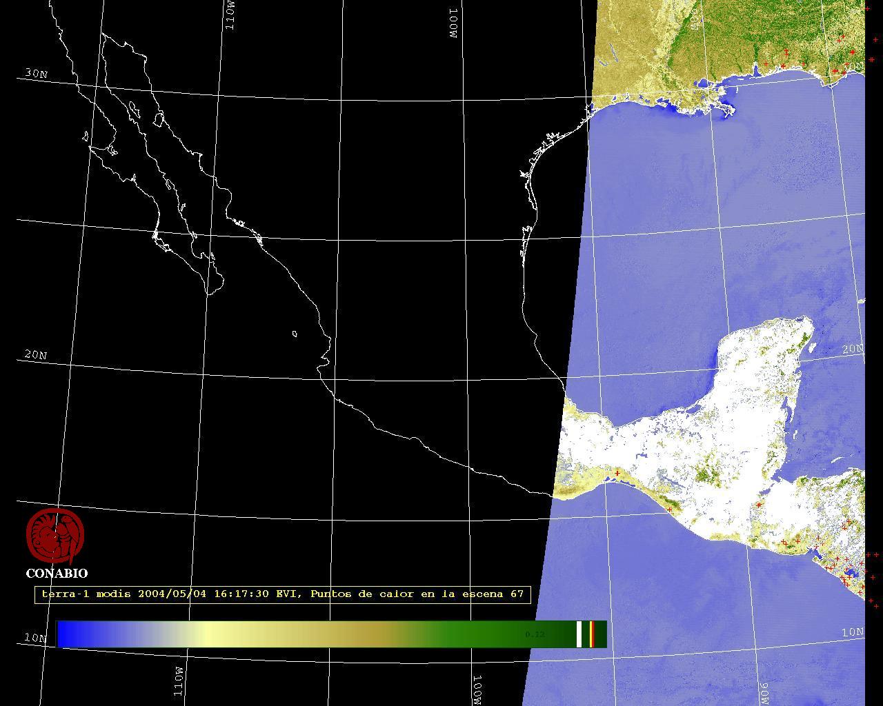 Se considera como punto de calor al elemento espacial mínimo de la imagen (pixel) que reporta una temperatura elevada. Para las imágenes diurnas la temperatura mínima considera es de 42 C y para las imágenes nocturnas es de 25 C. |