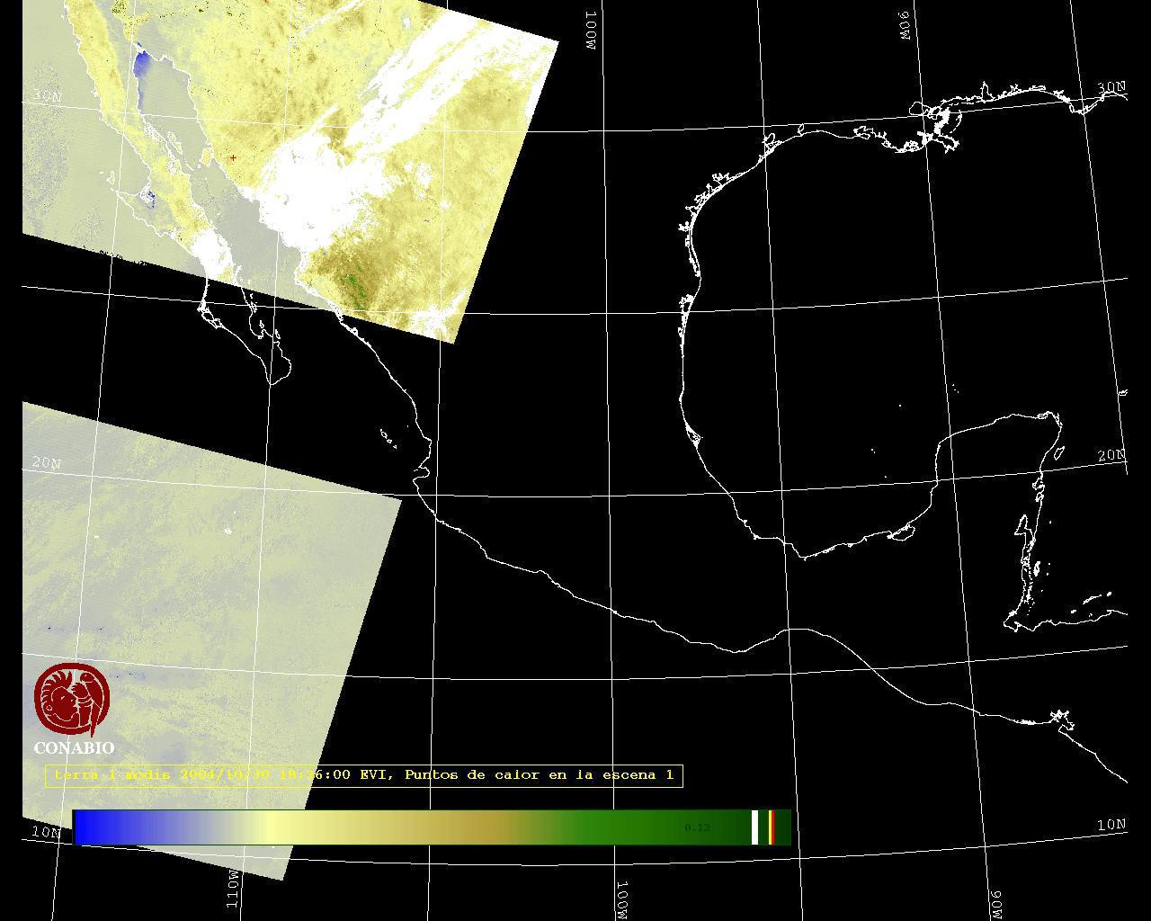 Se considera como punto de calor al elemento espacial mínimo de la imagen (pixel) que reporta una temperatura elevada. Para las imágenes diurnas la temperatura mínima considera es de 42 C y para las imágenes nocturnas es de 25 C. |