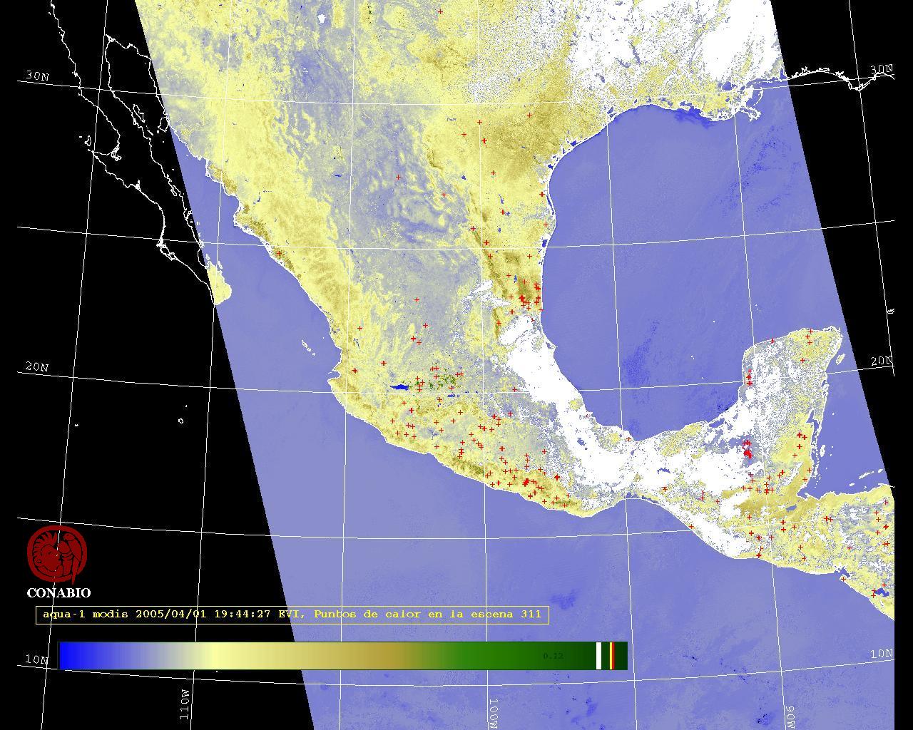 Se considera como punto de calor al elemento espacial mínimo de la imagen (pixel) que reporta una temperatura elevada. Para las imágenes diurnas la temperatura mínima considera es de 42 C y para las imágenes nocturnas es de 25 C. |