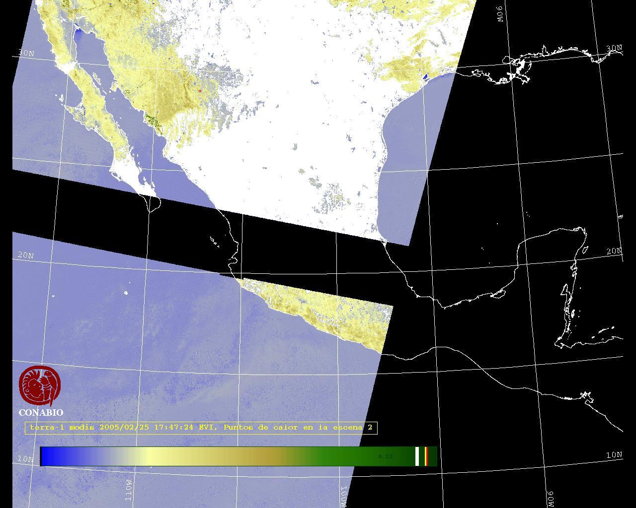 Se considera como punto de calor al elemento espacial mínimo de la imagen (pixel) que reporta una temperatura elevada. Para las imágenes diurnas la temperatura mínima considera es de 42 C y para las imágenes nocturnas es de 25 C. |