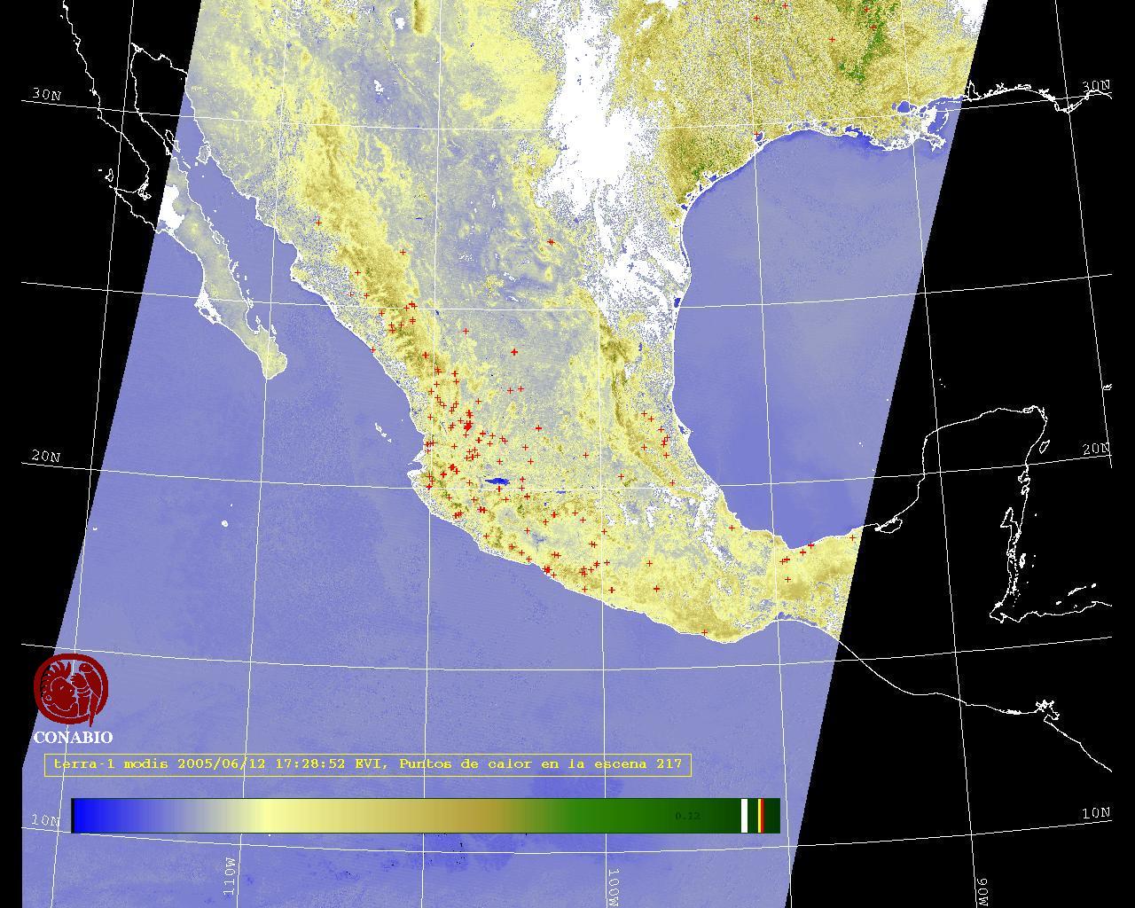 Se considera como punto de calor al elemento espacial mínimo de la imagen (pixel) que reporta una temperatura elevada. Para las imágenes diurnas la temperatura mínima considera es de 42 C y para las imágenes nocturnas es de 25 C. |