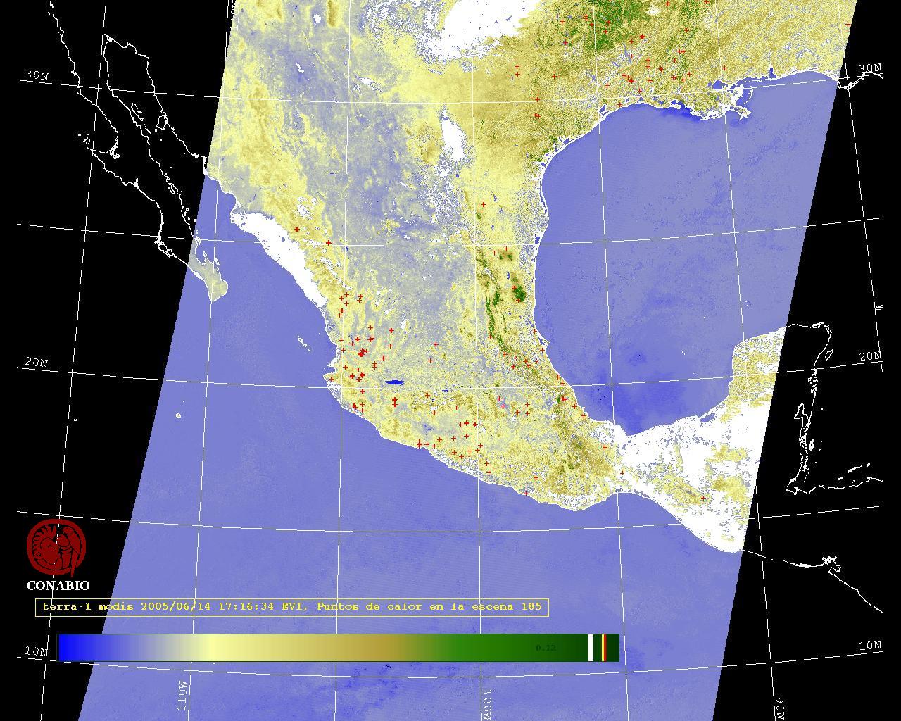 Se considera como punto de calor al elemento espacial mínimo de la imagen (pixel) que reporta una temperatura elevada. Para las imágenes diurnas la temperatura mínima considera es de 42 C y para las imágenes nocturnas es de 25 C. |