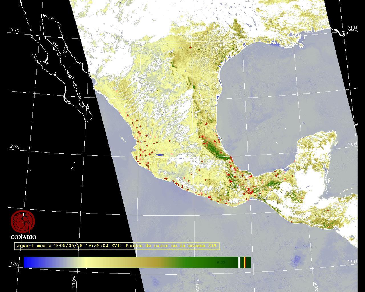 Se considera como punto de calor al elemento espacial mínimo de la imagen (pixel) que reporta una temperatura elevada. Para las imágenes diurnas la temperatura mínima considera es de 42 C y para las imágenes nocturnas es de 25 C. |