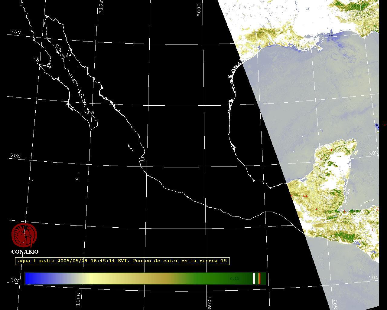 Se considera como punto de calor al elemento espacial mínimo de la imagen (pixel) que reporta una temperatura elevada. Para las imágenes diurnas la temperatura mínima considera es de 42 C y para las imágenes nocturnas es de 25 C. |