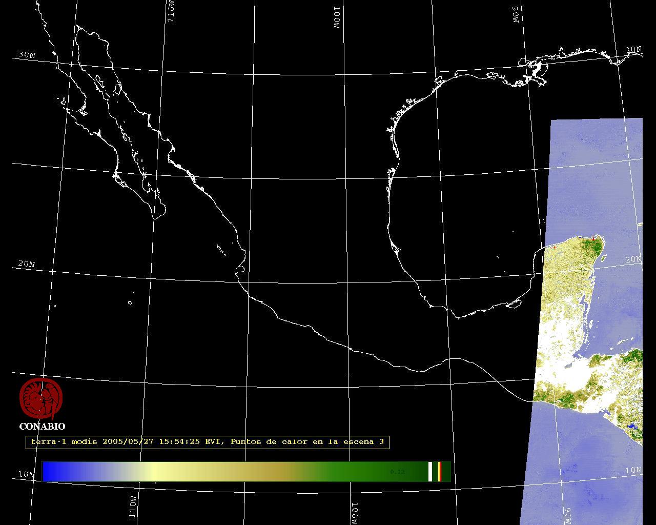 Se considera como punto de calor al elemento espacial mínimo de la imagen (pixel) que reporta una temperatura elevada. Para las imágenes diurnas la temperatura mínima considera es de 42 C y para las imágenes nocturnas es de 25 C. |